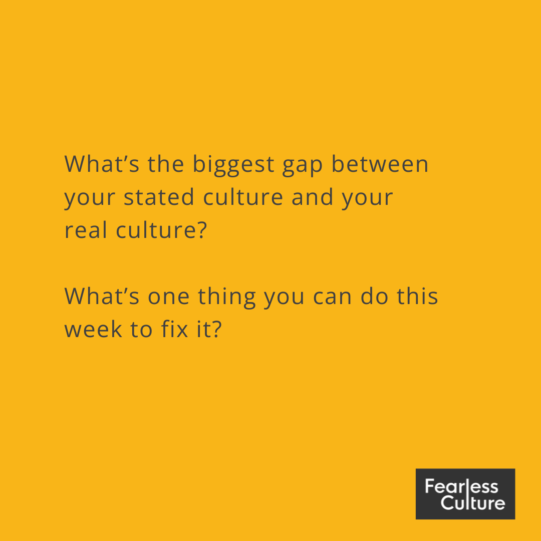 5. What’s the biggest gap between your stated culture and your real culture? What’s one thing you can do this week to fix it?
